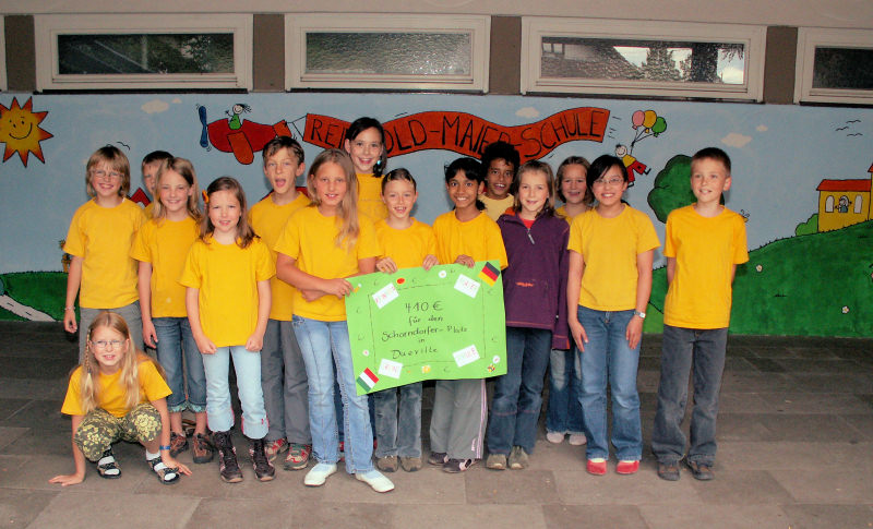 mit ihrem Schulleiter Wolfgang Schmid den stattlichen Betrag von 410 Euro an